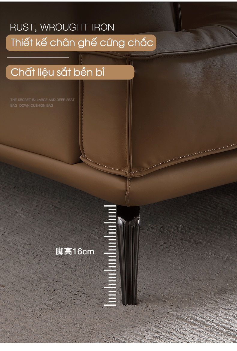 | Chất liệu da | Da bò lớp trên cùng |